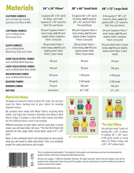 Capybara and Sloth Quilt & Pillow Pattern by Elizabeth Hartman