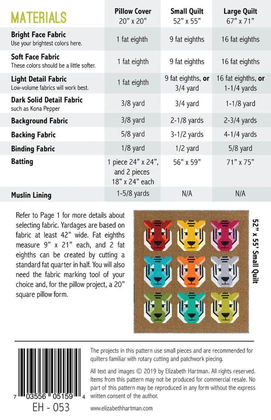 Antonia Tiger Quilt & Pillow Pattern by Elizabeth Hartman